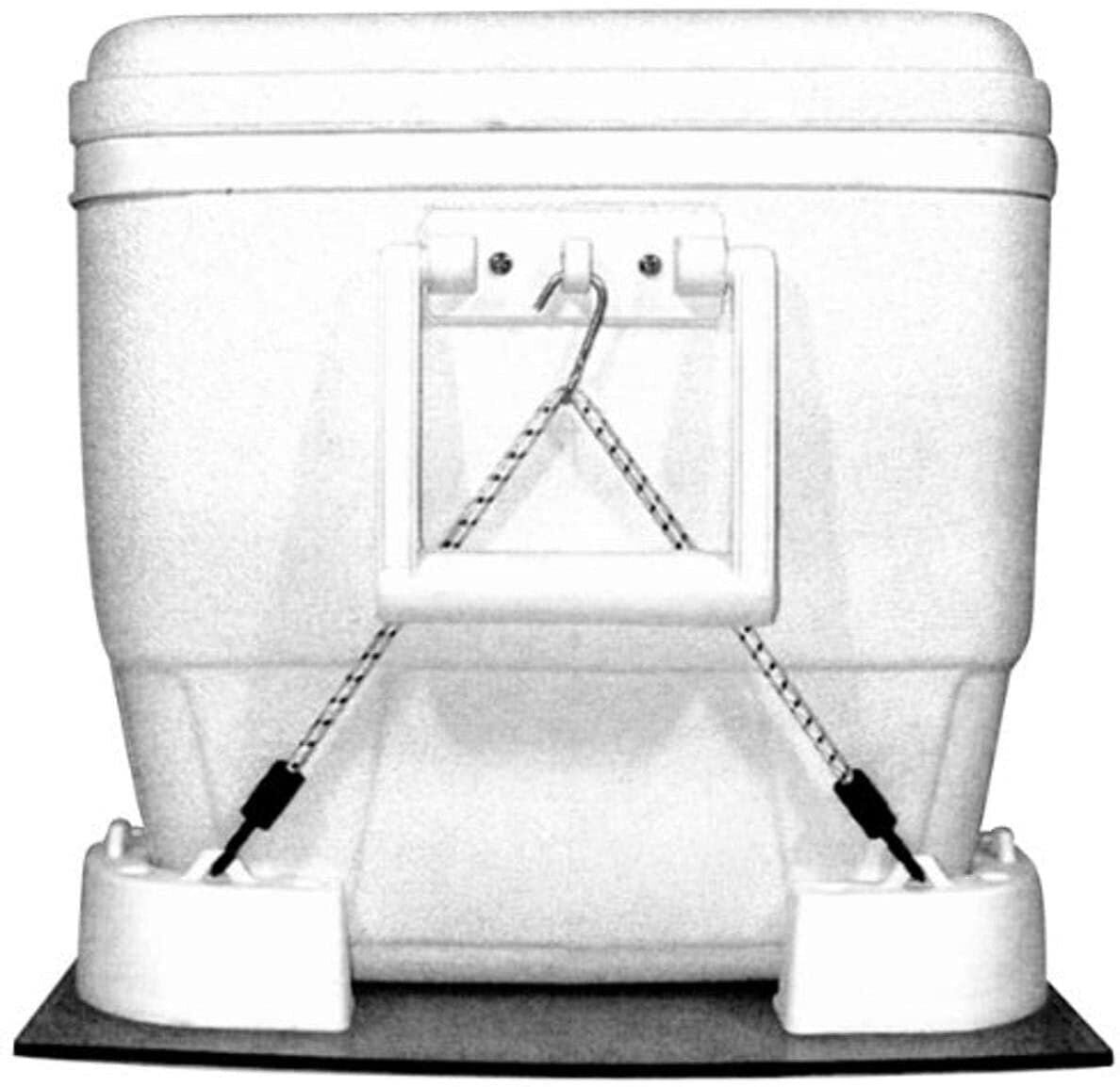 The Cooler Mounting Kit includes four corner brackets and two hold down straps. This kit will prevent cooler from moving around on the deck. The molded, UV resistant corner brackets have interior screw mounting holes to allow a flush mount against surfaces and to take up less deck space. The nylon bungee straps feature molded hooks and a stainless center hook for totally corrosion-proof mounting. Fits virtually all sizes and makes of coolers including Igloo. Straps provide secure mounting and are easy to disconnect. • Compatibility: All Size Coolers • Material: Plastic • With Cord: No • Nylon Bungee Straps Feature Molded Hooks And A Stainless Center Hook For Totally Corrosion-Proof Mounting• Recessed Fasteners Allow Full In-Corner Mounting• Secures Any Size Cooler To Deck• Molded, UV Resistant• Limited 1 Year WarrantyIncludes four corner brackets and two hold down strapsPrevent cooler from moving around on the deckMolded, UV resistant corner brackets have interior screw mounting holes to allow a flush mount against surfaces and to take up less deck spaceNylon bungee straps feature molded hooks and a stainless center hook for totally corrosion-proof mountingFits virtually all sizes and makes of coolers
